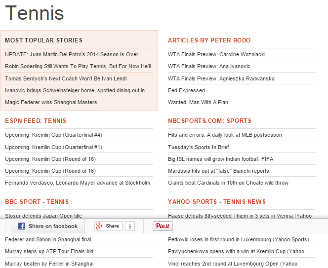 Pick a relevant category (tennis was selected in this example) and AllTop will give you a list of blogs in that category.