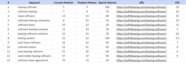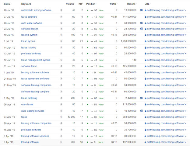 We saw a tremendous increase in keyword ranking and traffic for the page: https://soft4leasing.com/leasing-software/