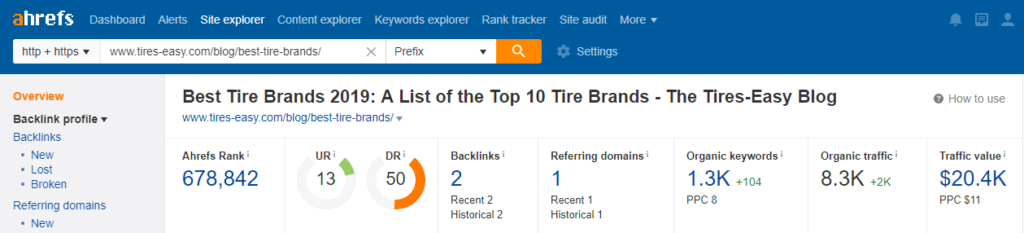 We started our task by searching for the right keyword which could be targeted for creating the resource that would cover the major tire brands.